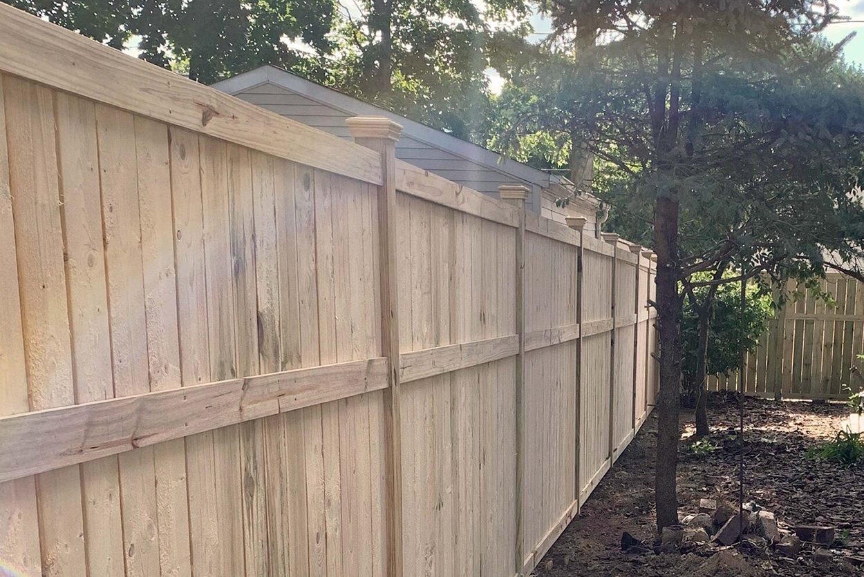 S&G Fence supplies professional-grade wood fences that are built to last through the toughest conditions. Our wood fences are made from either pine or cedar, both which have different benefits. Cedar features a beautiful natural coloration that also naturally protects your Lewis Center fence against bugs as well as decay. Pine fencing is a more affordable option that is pressure-treated to avoid quick decay and protect your investment from the elements. Our Lewis Center fence designers will work with you to create a fence that complements your property. Your Lewis Center wood fence is custom built at your home to match the curves of the landscape.